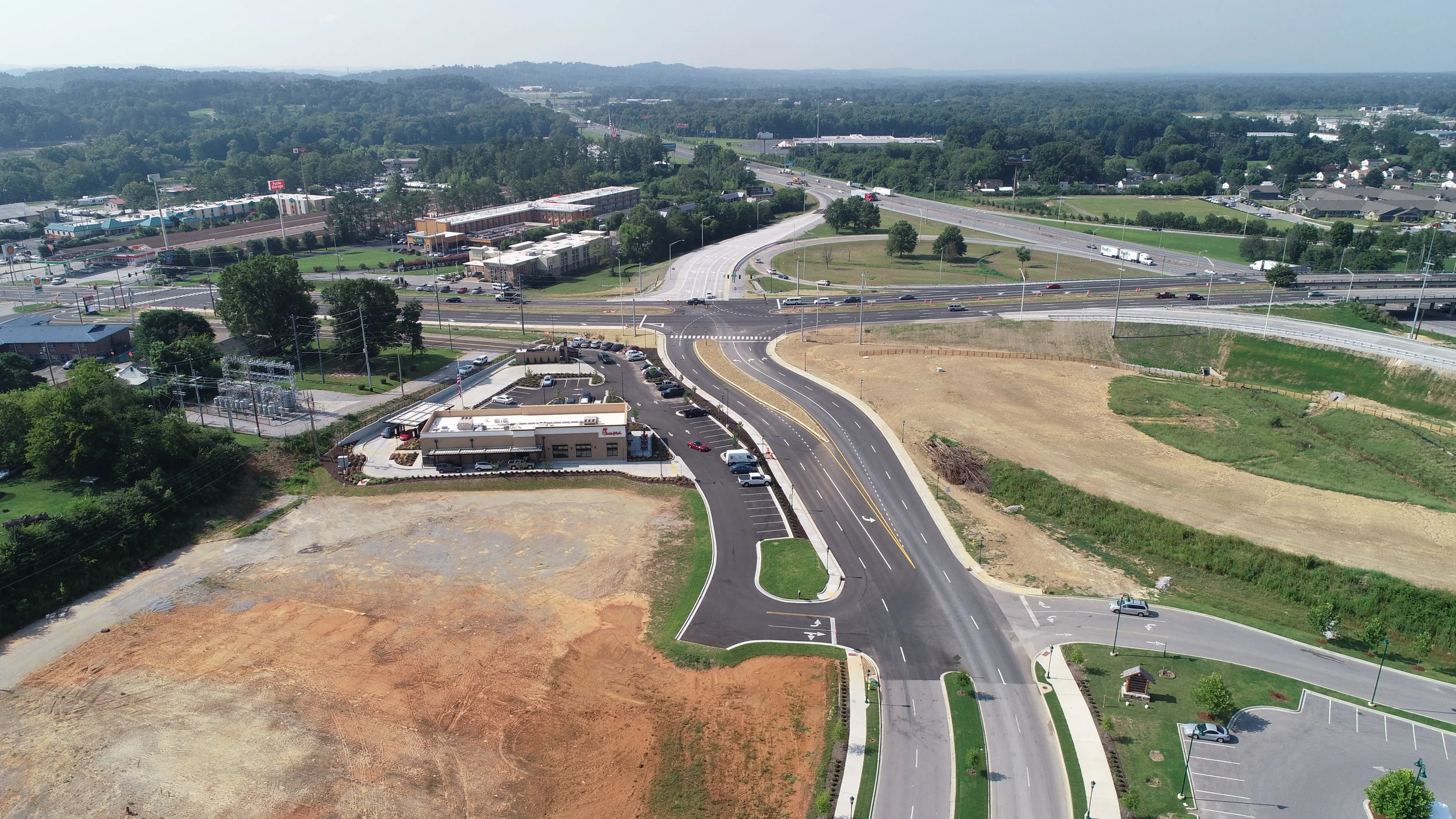 In June of 2016 the City of East Ridge selected the Vaughn & Melton / Asa Engineering & Consulting Team to provide TDOT Local Programs PE-NEPA and Design services on the proposed improvements to I-75 Exit One in East Ridge, Tennessee. Then, in the Spring of 2017, The City selected the AMEC Foster-Wheeler / Asa team to provide CEI services during the construction phase of the project. Spurred by the recent development on Camp Jordan Parkway, and the construction of the new Bass Pro retailer adjacent to the northeast quadrant of the interchange, the functionally deficient interchange requires direct accessibility between I-75 and Camp Jordan Parkway, better on-ramp and off-ramp capacity and alignment, the elimination of cloverleaf ramp conflicts, and the addition of signalization at the new Camp Jordan Road and I-75 N.B. off-ramp intersection.
